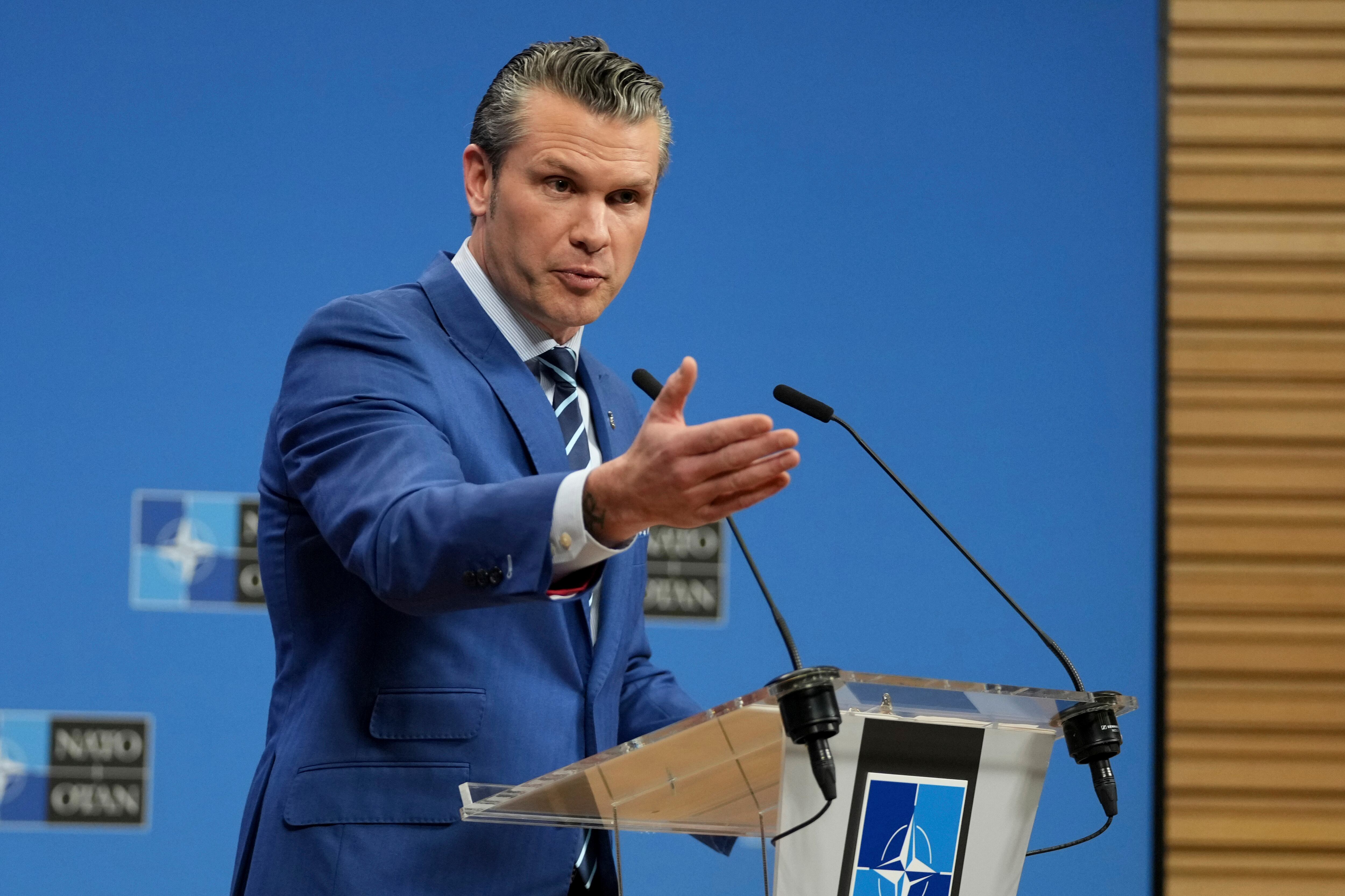 El secretario de Defensa de EEUU, Pete Hegseth, habla durante una conferencia de prensa en la sede de la OTAN en Bruselas, el 13 de febrero de 2025. (AP Foto/Virginia Mayo, Archivo) AP (Virginia Mayo/AP)
