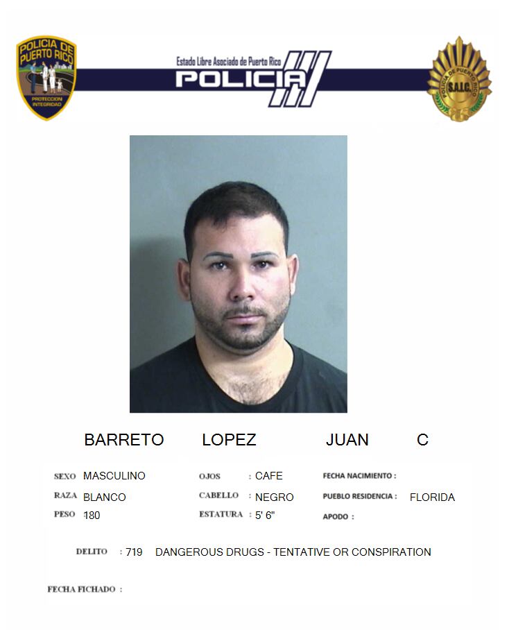 La Policía informó el viernes, 7 de marzo de 2025, sobre el arresto de Juan Carlos Barreto López, de 43 años y vecino de Florida, quien figuraba entre los 10 más buscados del área de Arecibo.