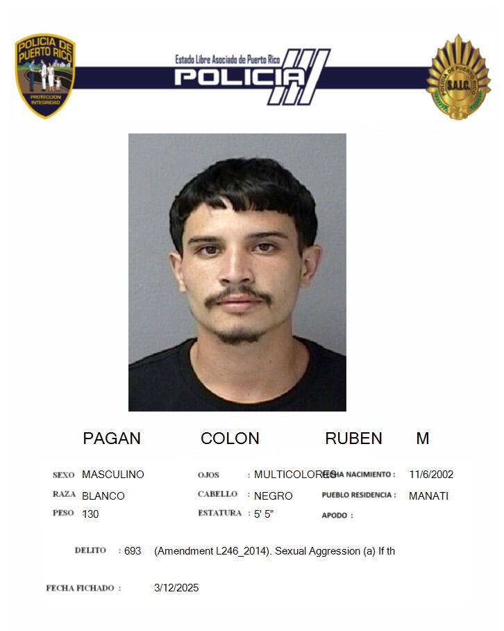 Agentes del Negociado de la Policía de Puerto Rico y el Departamento de Justicia, durante la tarde del miércoles, 12 de marzo de 2025, presentaron cargos criminales contra Rubén M. Pagán Colón, de 22 años y residente de Manatí.