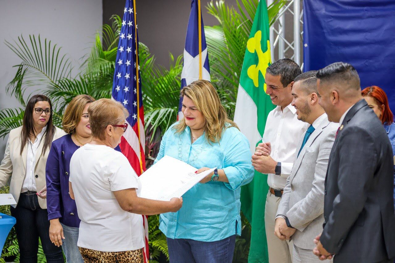La gobernadora Jenniffer González Colón entregó el jueves 27 títulos de propiedad a familias del Proyecto Brisas de la Sierra, en Comerío, poniendo fin a una espera de hasta 15 años por la titularidad de sus hogares.