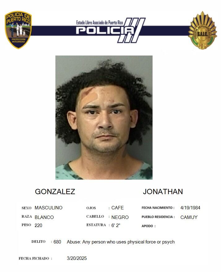 Agentes de la División de Violencia Doméstica del área de Arecibo, realizaron una investigación que culminó la tarde del jueves, 20 de marzo de 2025, con la presentación de un cargo por maltrato de la Ley de Violencia Doméstica contra un hombre, identificado como Jonathan González, de 40 años y residente del pueblo de Camuy.