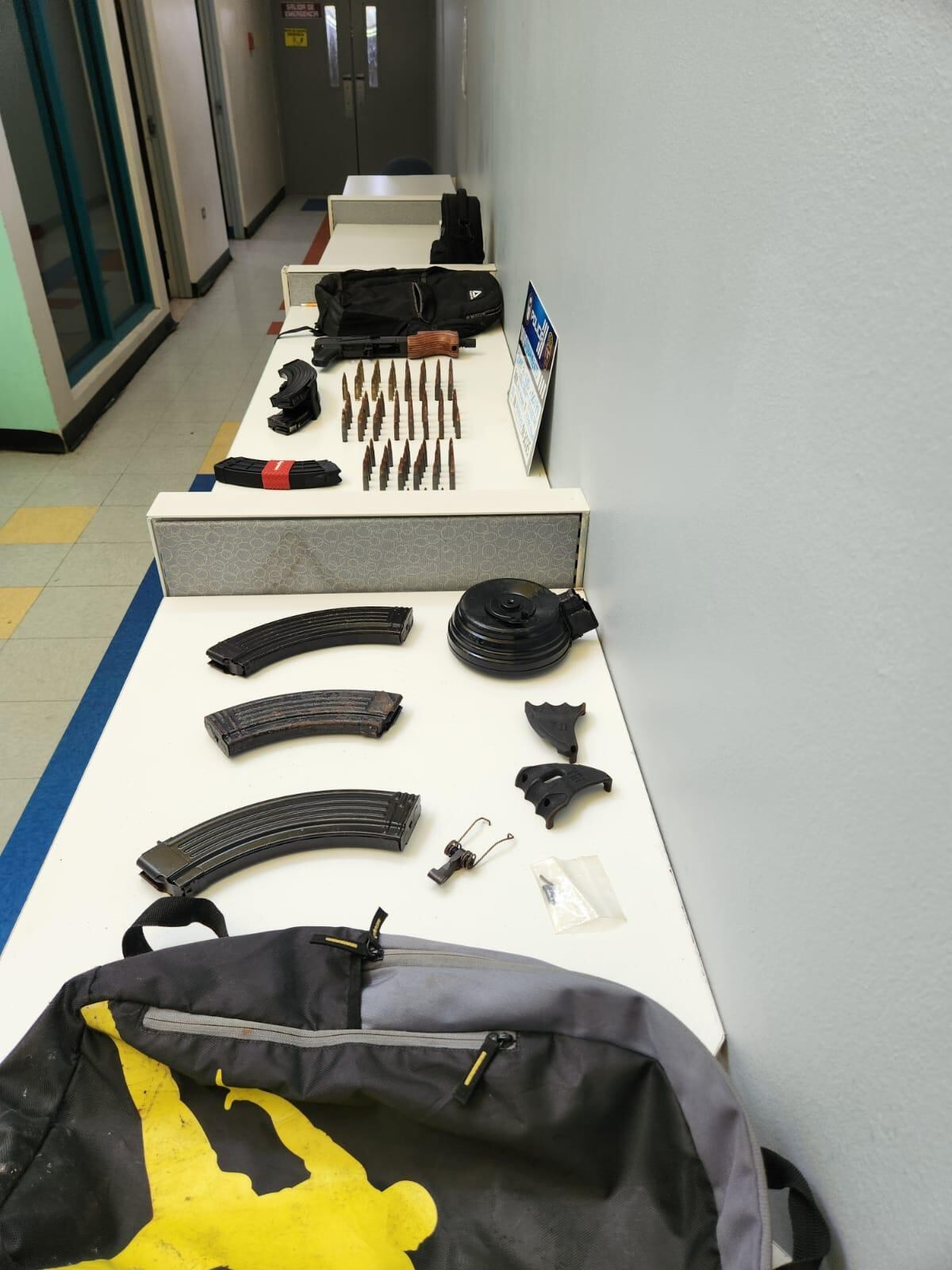 Como parte de la evidencia ocupada, los agentes confiscaron dos envases con marihuana, 89 pastillas controladas y un arma larga tipo rifle Pistol, calibre 7.62 x 39 milímetros.