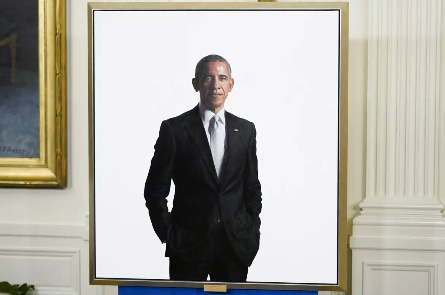 El retrato de Obama se exhibió en el vestíbulo del Piso Estatal, cerca de la escalera a la residencia del presidente, después de que se revelara en 2022. La Casa Blanca dijo que todavía está en el vestíbulo, pero ha sido movido a la pared opuesta, donde solía estar un retrato del expresidente George W. Bush.