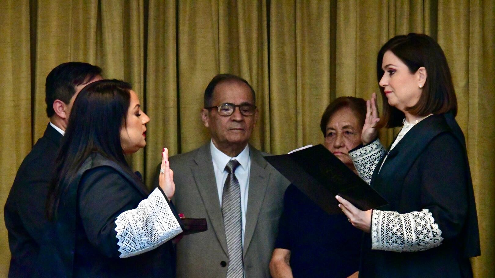 La Jueza Presidenta, Hon. Maite D. Oronoz Rodríguez, estuvo a cargo de tomar el juramento a ambos juristas, quienes estuvieron acompañados por sus respectivas familias, en una ceremonia protocolar que se celebró en el histórico Salón de Sesiones.