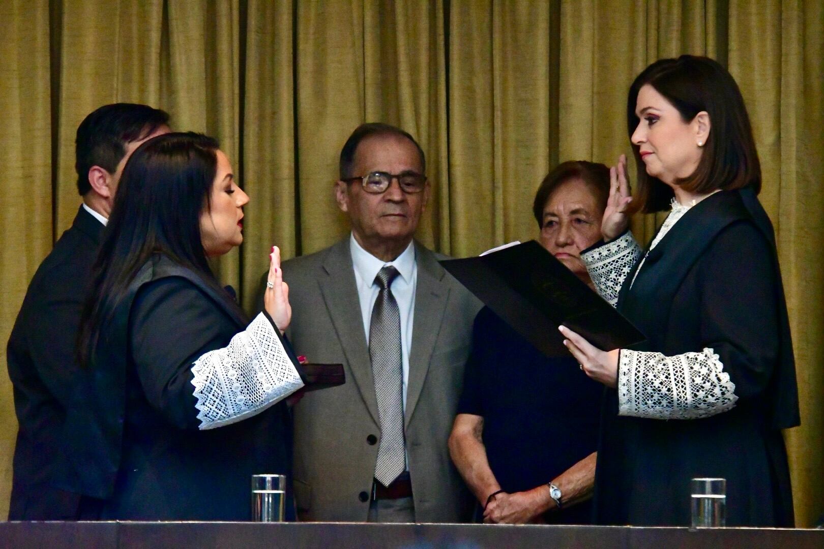 La Jueza Presidenta, Hon. Maite D. Oronoz Rodríguez, estuvo a cargo de tomar el juramento a ambos juristas, quienes estuvieron acompañados por sus respectivas familias, en una ceremonia protocolar que se celebró en el histórico Salón de Sesiones.