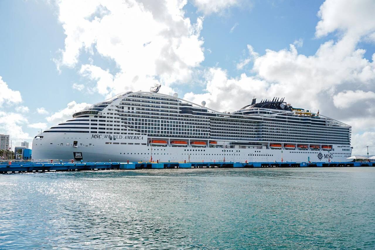 El MSC World America, crucero recién inaugurado de la línea MSC, atracó hoy en el puerto de San Juan para realizar su primera visita a la isla.