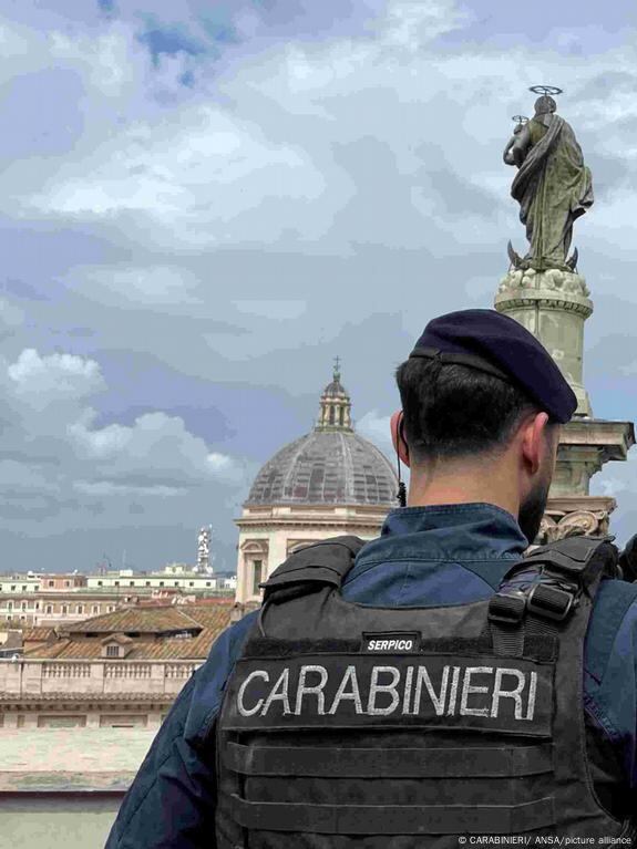 Carabineros italianos asumieron los servicios de control y seguridad tanto en la Plaza de San Pedro en el Vaticano como en la Basílica de Santa María la Mayor en Roma, antes del funeral del papa Francisco. DW