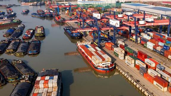 Barcos de transporte en el puerto y muelle del Gran Canal Pekín-Hangzhou en la ciudad de Huai 'an, provincia de Jiangsu, China. (Imagen de archivo: 08.10.2024) DW