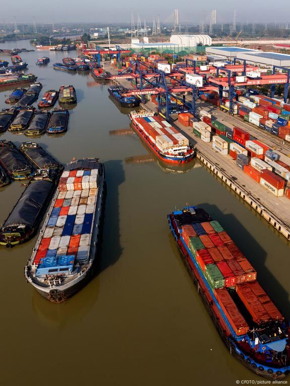 Barcos de transporte en el puerto y muelle del Gran Canal Pekín-Hangzhou en la ciudad de Huai 'an, provincia de Jiangsu, China. (Imagen de archivo: 08.10.2024) DW