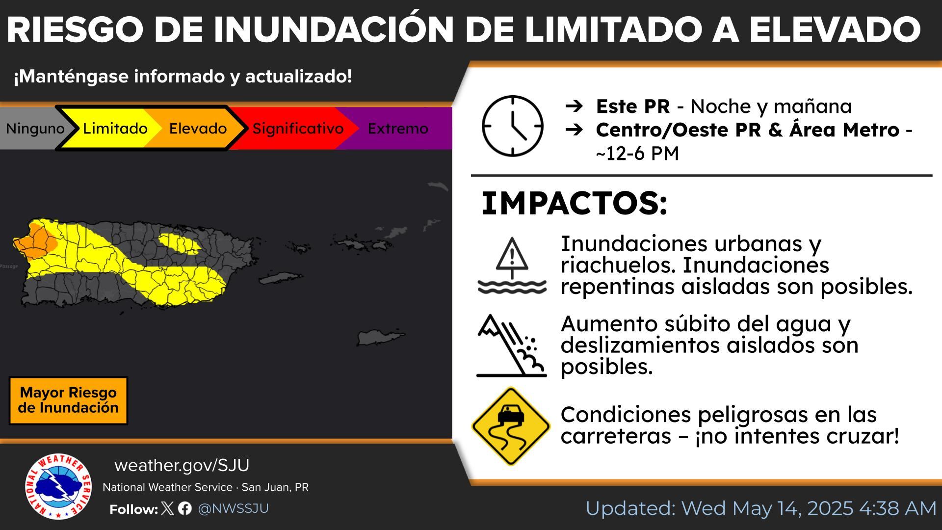 [ May 14 ] 🌧️ Limited to Locally Elevated Flooding Risk | Riesgo Limitado a Localmente Elevado de Inundaciones 🌧️