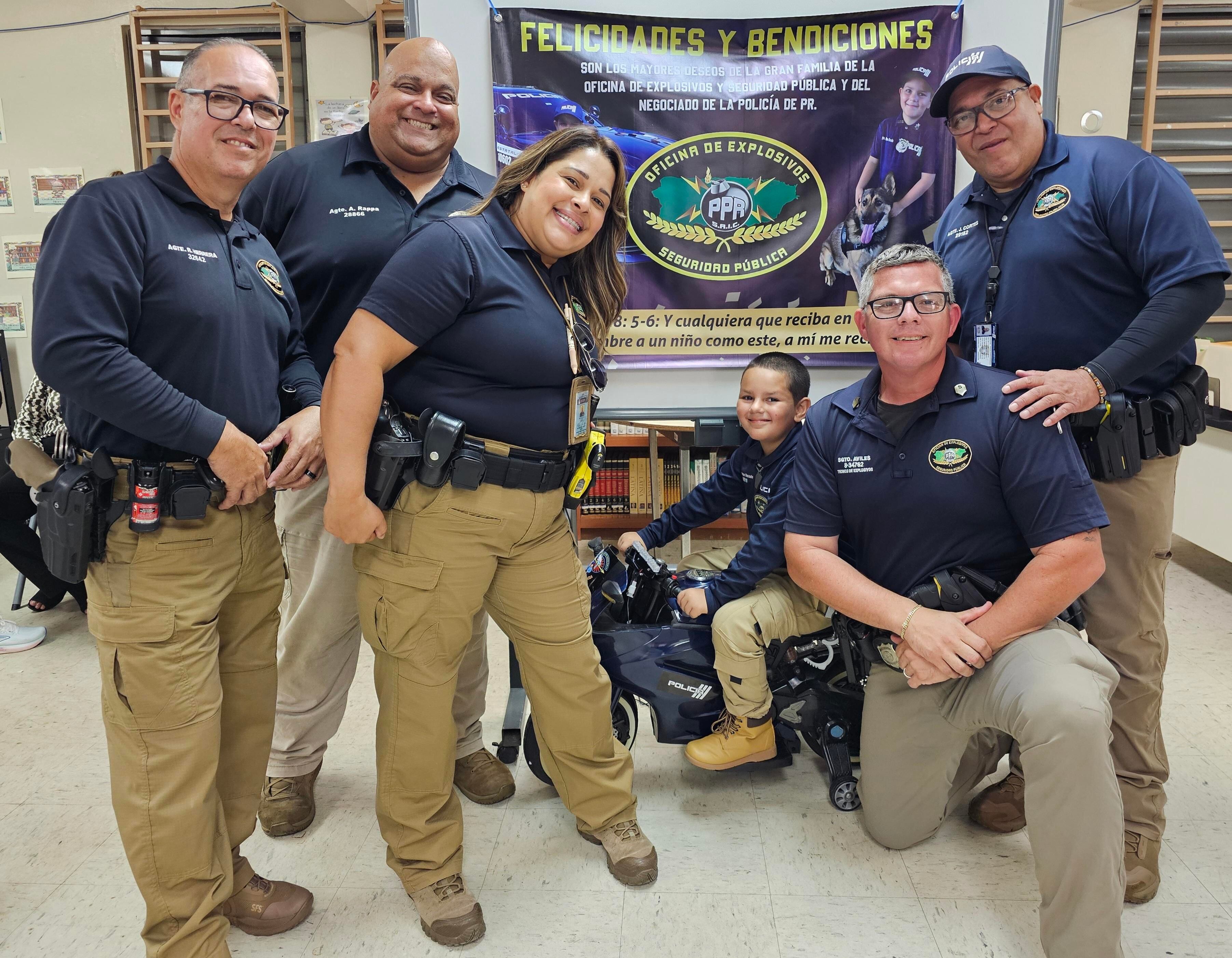 En la emotiva sorpresa, el sargento Christian Avilés Aponte, Angelica Del Valle, Alejandro Capa, Rafael Herrera, Jennifer Quiñonez, Damaris Negrón y Jesús Cortes, en unión a los personajes llamados Poli Cía y el super Héroe, le dieron el mejor regalo en su día de cumpleaños, ya que su sueño es ser Policía.
