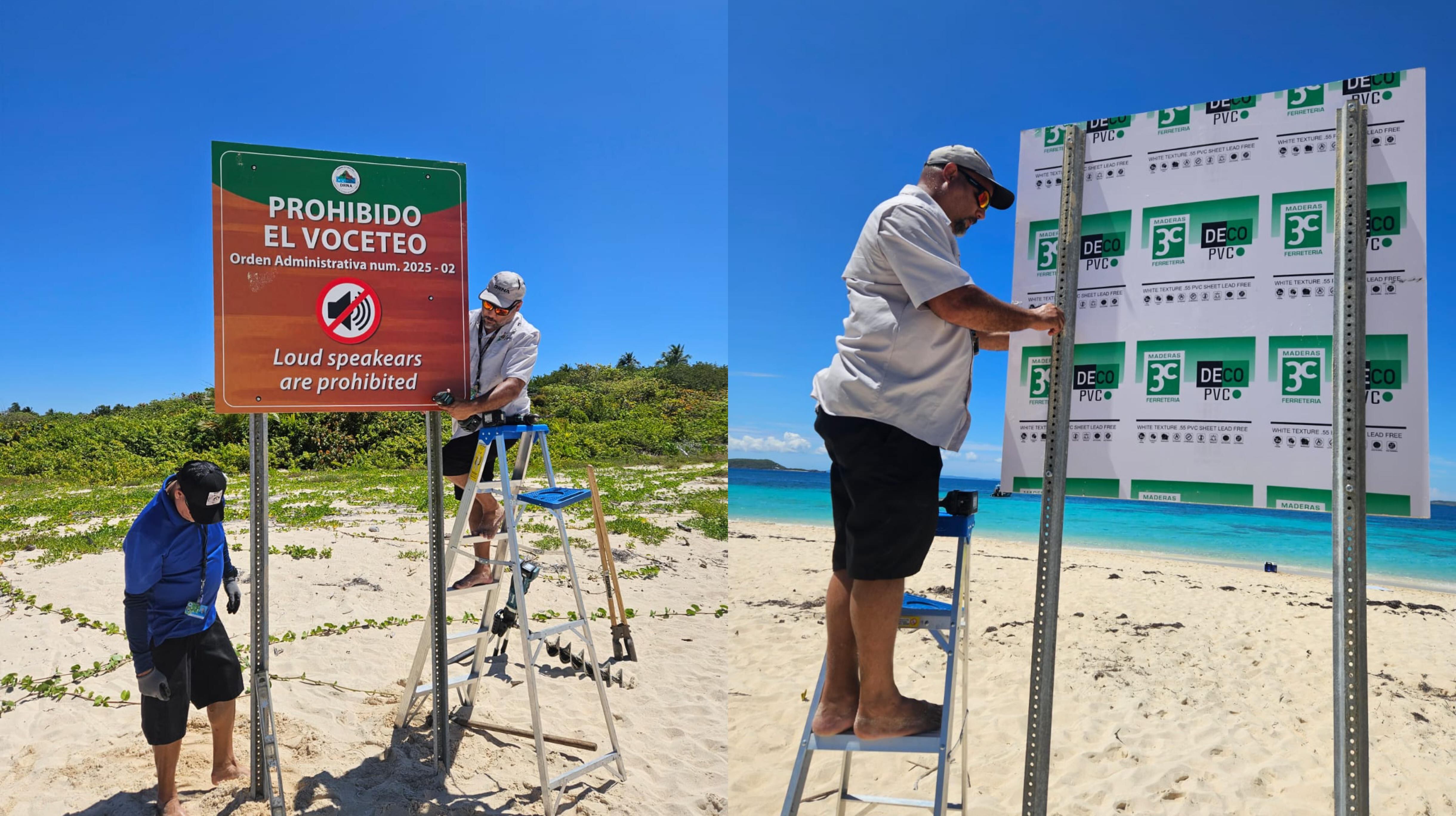 El secretario del Departamento de Recursos Naturales y Ambientales (DRNA), Waldemar Quiles, informó este domingo que personal de la Oficina de Navegación instalaron nueva rotulación en las isla de Icacos y Palomino para informar sobre los parámetros de la Orden Administrativa 2025-02 la cual prohíbe la práctica de utilizar sistemas de sonido de alto volumen, el llamado ‘voceteo’, dentro de las áreas naturales protegidas bajo la jurisdicción de la agencia.
