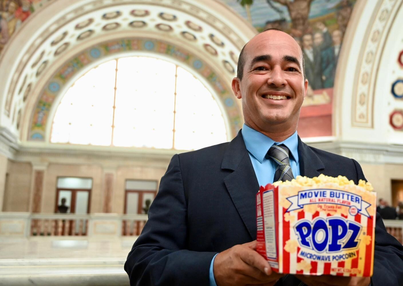 Molina llegó al Capitolio con una caja de palomitas de maíz o pop corn, como se suele hacer en el cine o algún espectáculo de entretenimiento.