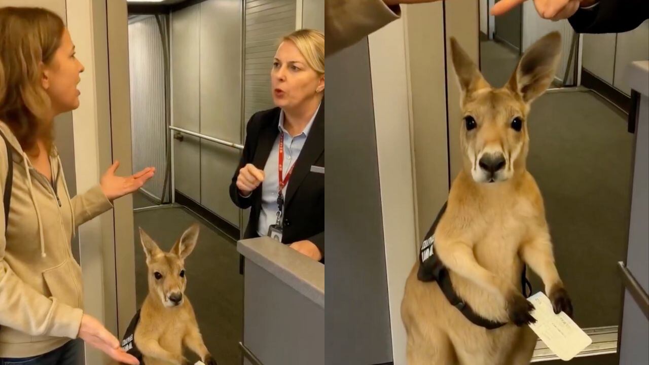 Lo antes dicho permite encontrar videos sumamente variados, pero entre todos los posteos, en las últimas horas se comenzó a viralizar el conflicto que tuvieron dos personas por un canguro. Sí, las imágenes muestran la discusión entre dos mujeres para resolver si un canguro podía o no abordar a un avión.
