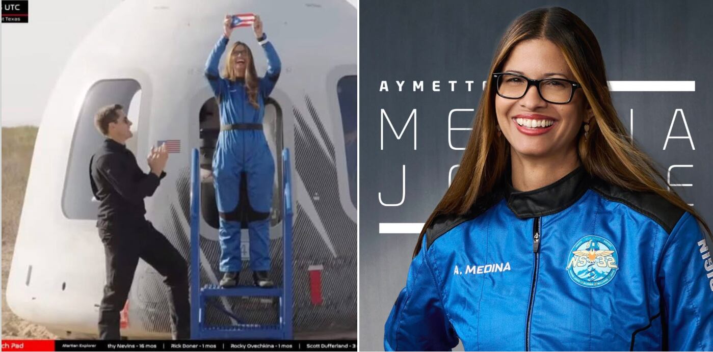 La maestra Aymette Medina Jorge hizo historia este sábado al convertirse en la primera mujer puertorriqueña en viajar al espacio, como parte de una misión encabezada por la empresa de astronáutica Blue Origin.