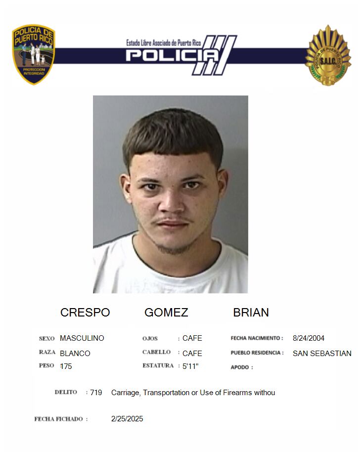 Según las autoridades, Crespo Gómez estuvo involucrado en un robo a mano armada en el supermercado El Paraíso, ubicado en la carretera PR-435 del barrio Mirabeles, en San Sebastián.