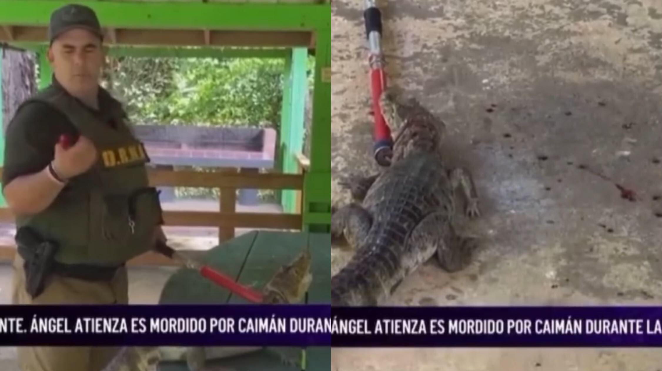 “Mientras el teniente (Ángel) Atienza preparaba a un caimán para nuestra entrevista, el tape que el animal tenía en la boca se soltó y, en cuestión de segundos, le mordió el dedo. El incidente no tiene nada que ver con la experiencia del vigilante, quien lleva décadas realizando este tipo de intervenciones. De hecho, es la primera vez que un animal lo muerde frente a cámaras”, escribió el también líder comunitario en la red social.