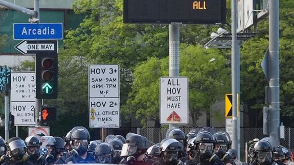 La funcionaria se refería a los choques entre agentes del orden y una multitud que repudió este sábado las redadas de trabajadores migrantes, que ejecutó en Los Ángeles el Servicio de Control de Inmigración y Aduanas (ICE).