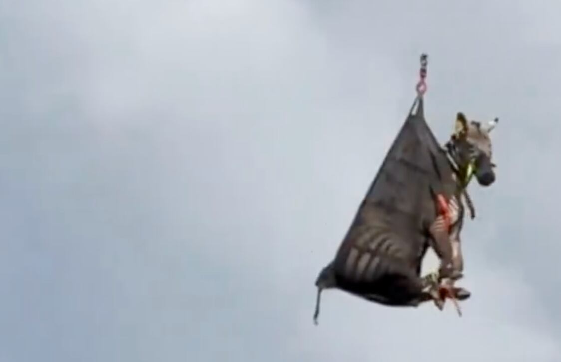 Las autoridades informaron que Ed fue capturado por equipos de aviación y trasladado de manera segura en helicóptero hasta un remolque de animales. En un video compartido por la propia agencia, se observa al animal envuelto en una red, con la cabeza sobresaliendo, mientras es transportado por aire.