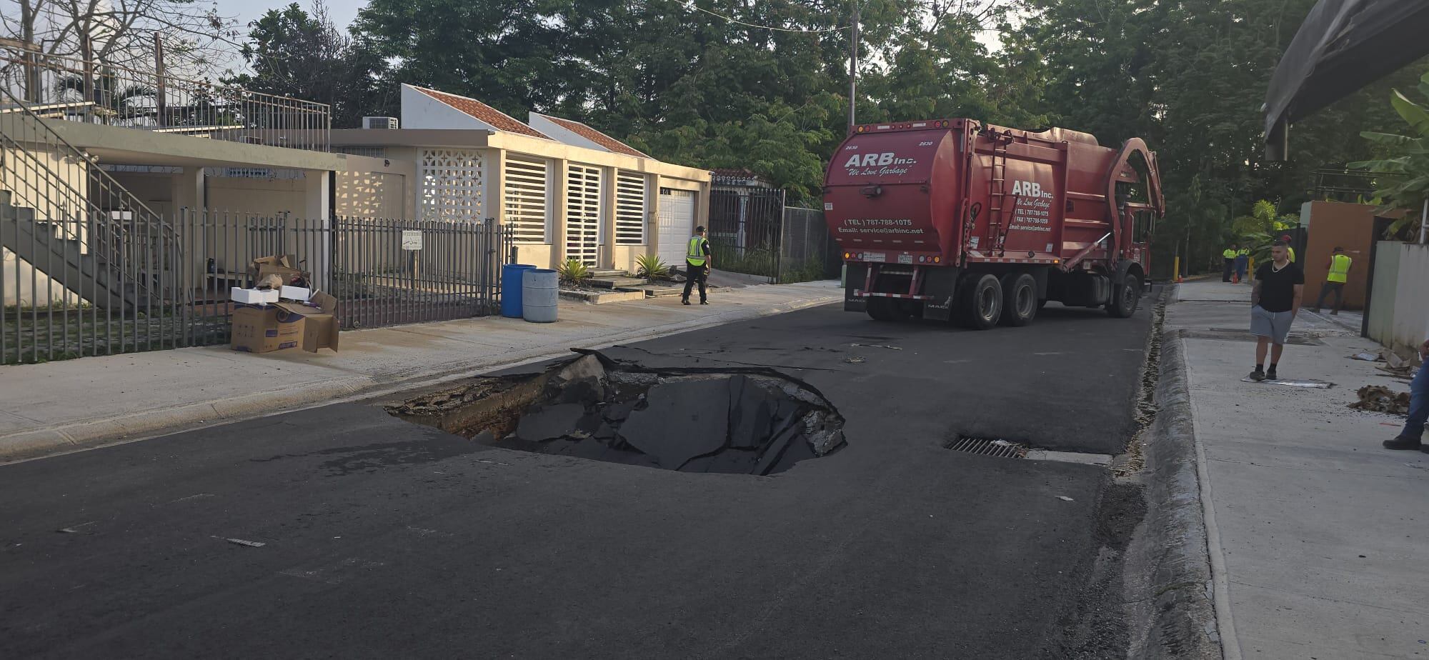Agentes del Negociado de la Policía de Puerto Rico, adscritos al precinto policiaco Bayamón Centro, investigaron un accidente por socavón, ocurrido la madrugada del jueves, 12 de junio de 2025, en la calle 32, urbanización Rexville, frente al centro comercial Rexville Plaza, en Bayamón.