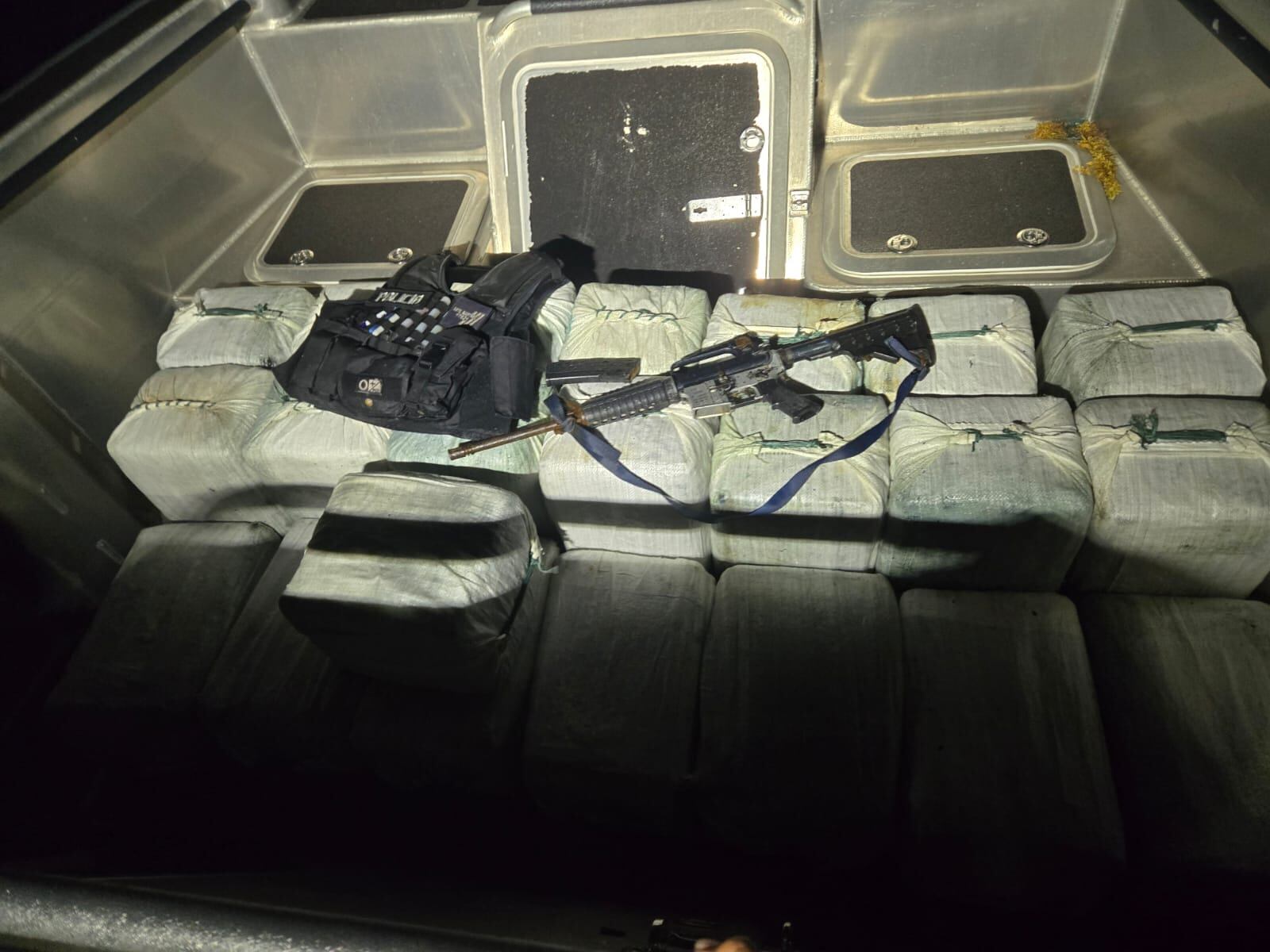 Dentro de la embarcación los agentes encontraron a los tres individuos sin documentación válida, 22 fardos con cocaína y un rifle tipo AR-15. El Buró Federal de Investigaciones asumió la custodia de los arrestados y el arma, mientras que la Administración para el Control de Drogas se hizo cargo de los narcóticos.