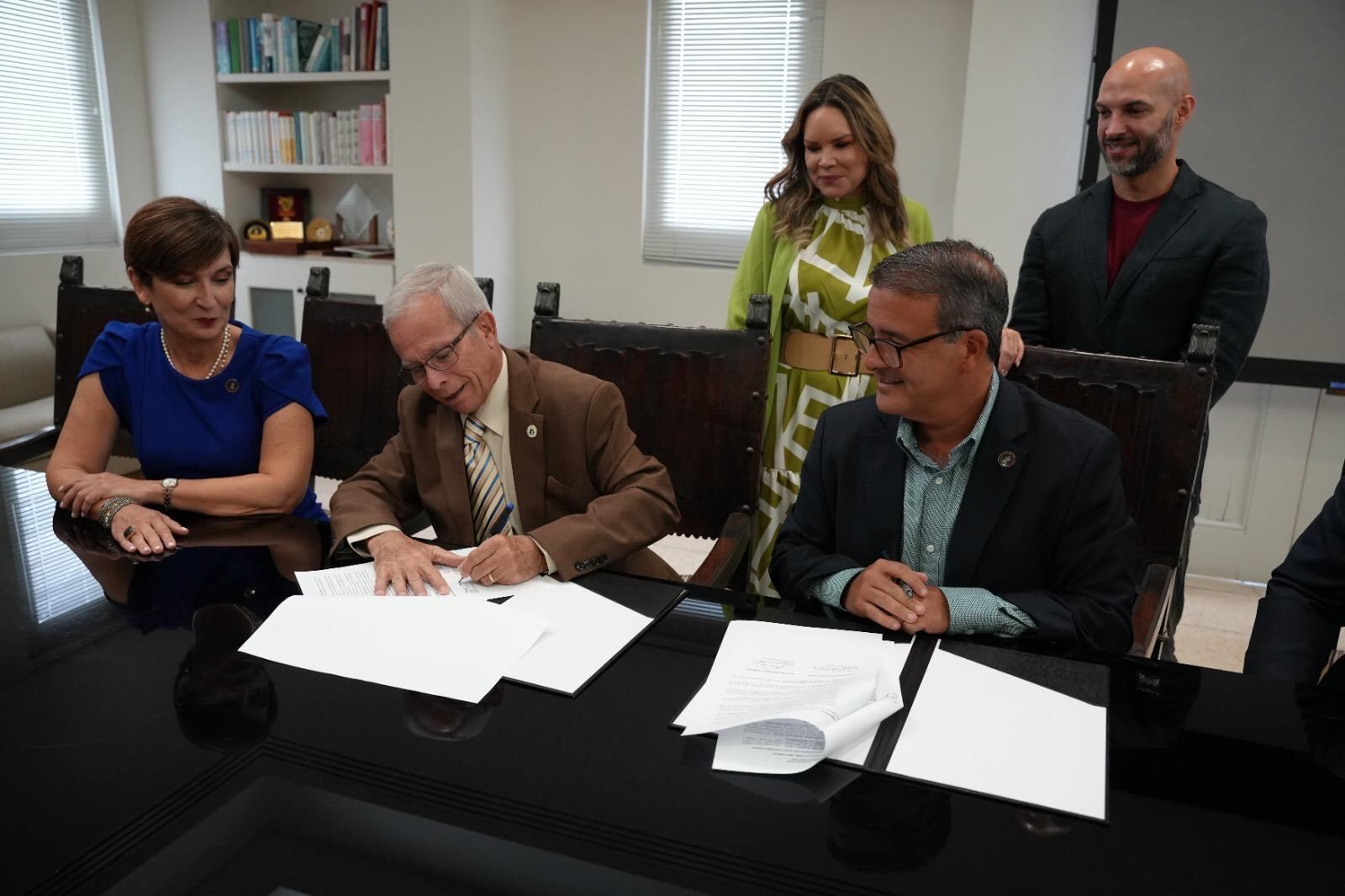 Durante la firma del contrato, el presidente Interino estuvo acompañado de la presidenta Entrante de la institución, la Dra. Zayira Jordán Conde, y el presidente de MCS, el Lcdo. Roberto Pando Cintrón. El presidente Interino resaltó el compromiso institucional con los empleados y familiares de contar con servicios médicos de calidad. Este contrato representa una inversión institucional que sobrepasa los $60 millones de dólares y beneficia a más de 14,000 miembros que incluye empleados docentes, no docentes y familiares.