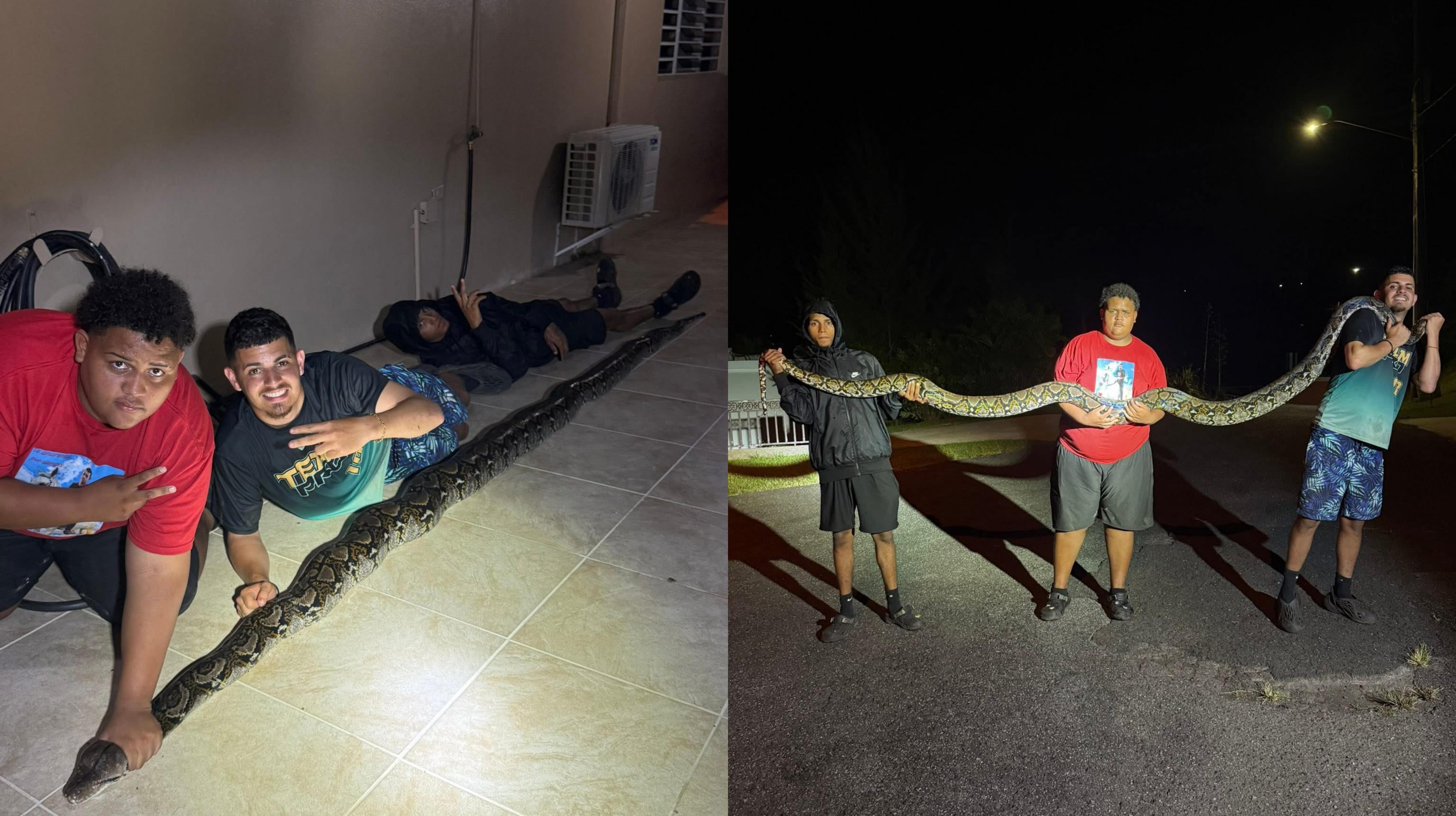 El creador de contenido precisó que la primera la apresó en el barrio Guadiana de Naranjito. Esa midió 12 pies. Las otras dos fueron en el barrio Sumidero de Aguas Buenas, de 13 pies (en La Jacana) y la última de 14 pies.