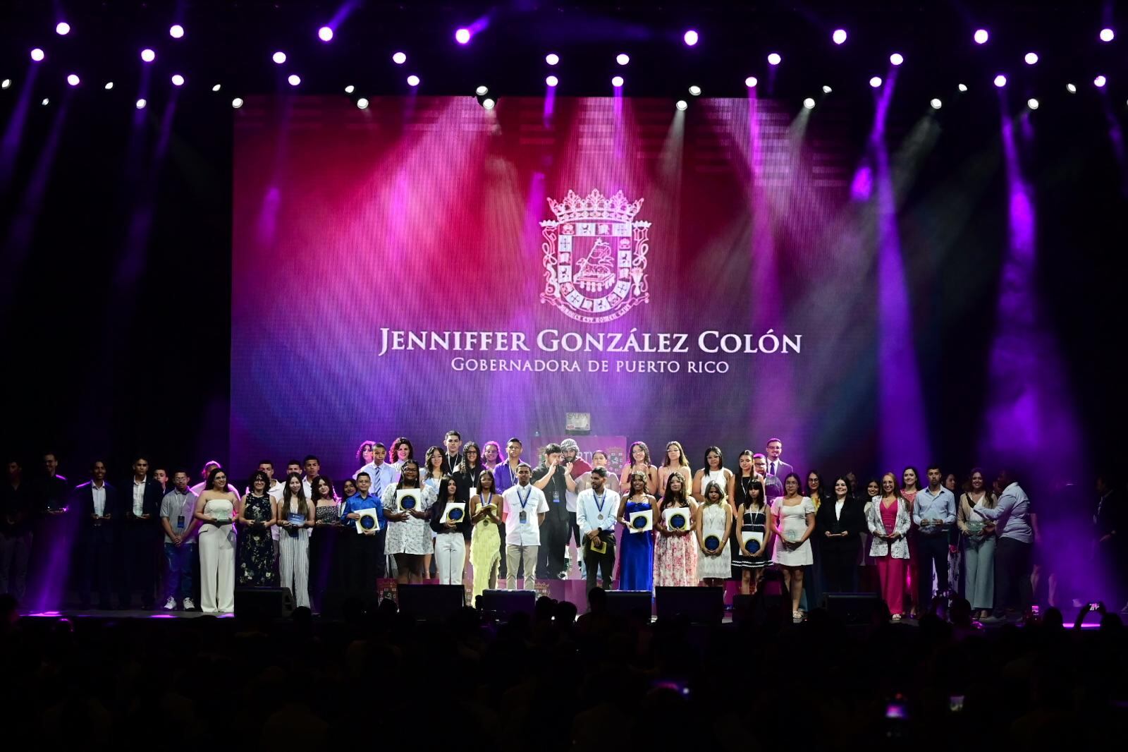 La gobernadora de Puerto Rico, Jenniffer González Colón, reconoció este lunes la excelencia académica de 1,500 estudiantes de educación pública en toda la isla en el evento denominado “Party de los 4 Puntos”.