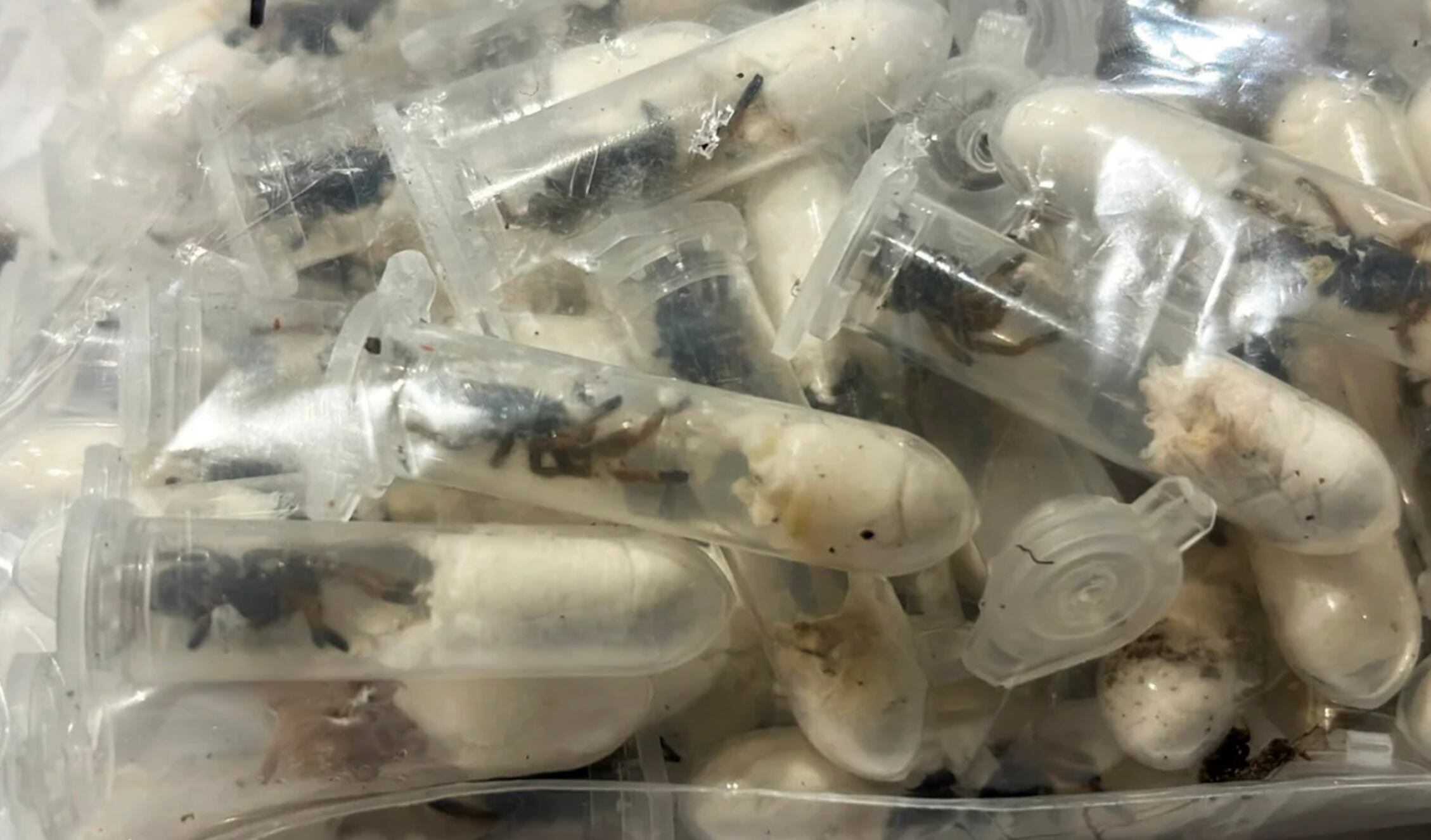 Los arácnidos eran transportados en condiciones precarias dentro de pequeños envases de plástico. Muchas no sobrevivieron al viaje.