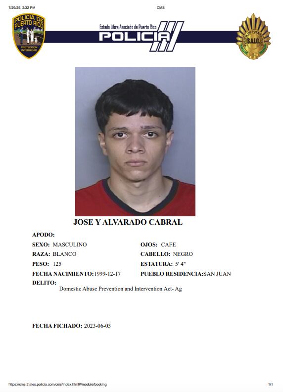 La Policía indicó que Alvarado Cabral tenía expediente criminal previo, con el más reciente en el año 2023 por violencia de género.