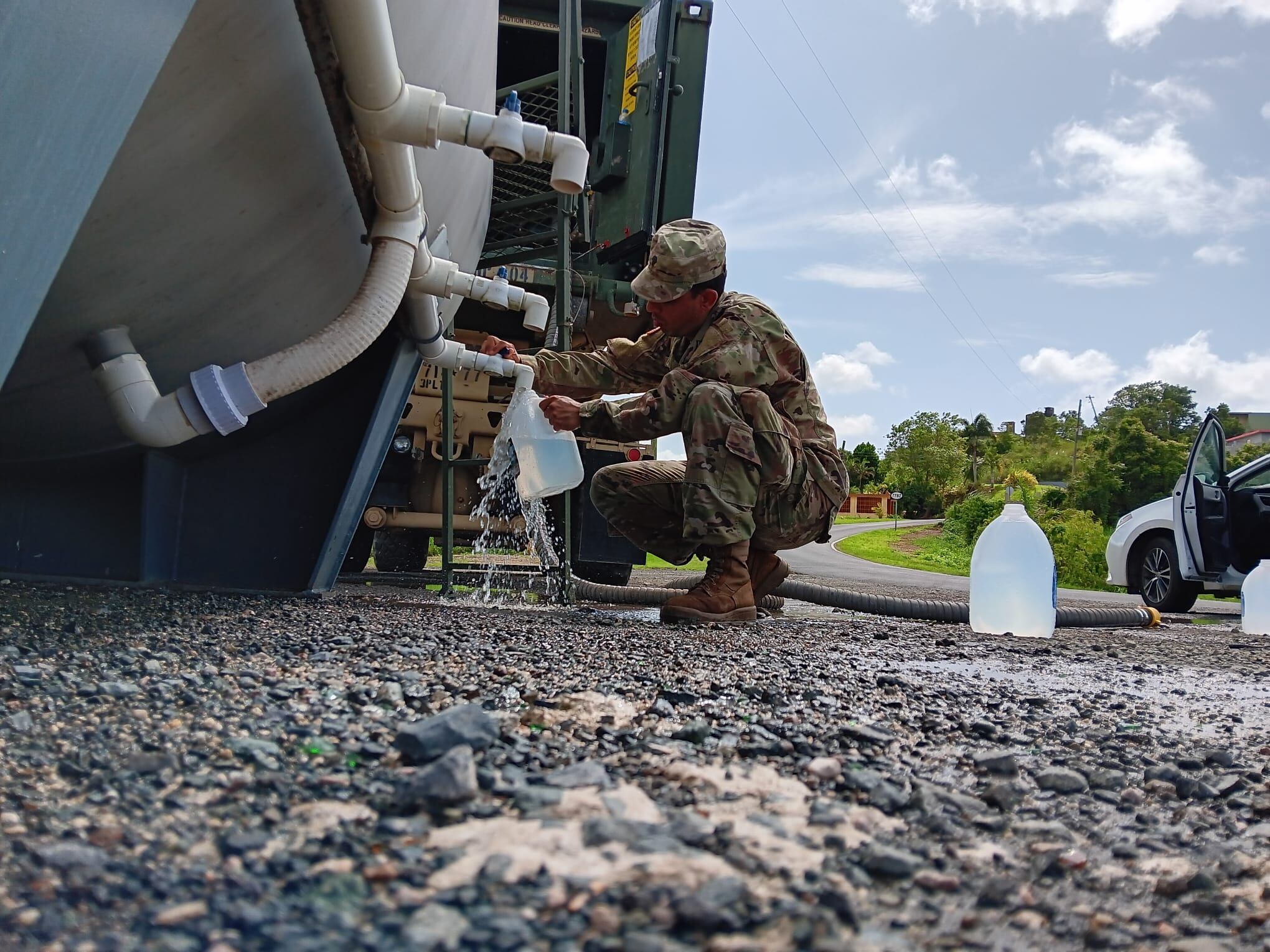 “La Guardia Nacional de Puerto Rico está en apoyo directo a la Autoridad de Acueductos y Alcantarillados, con una capacidad de distribución de aproximadamente 48,000 galones diarios utilizando seis vehículos tipo Hippo”, expresó el coronel Carlos Rivera Román, Ayudante General de Puerto Rico en declaraciones escritas.