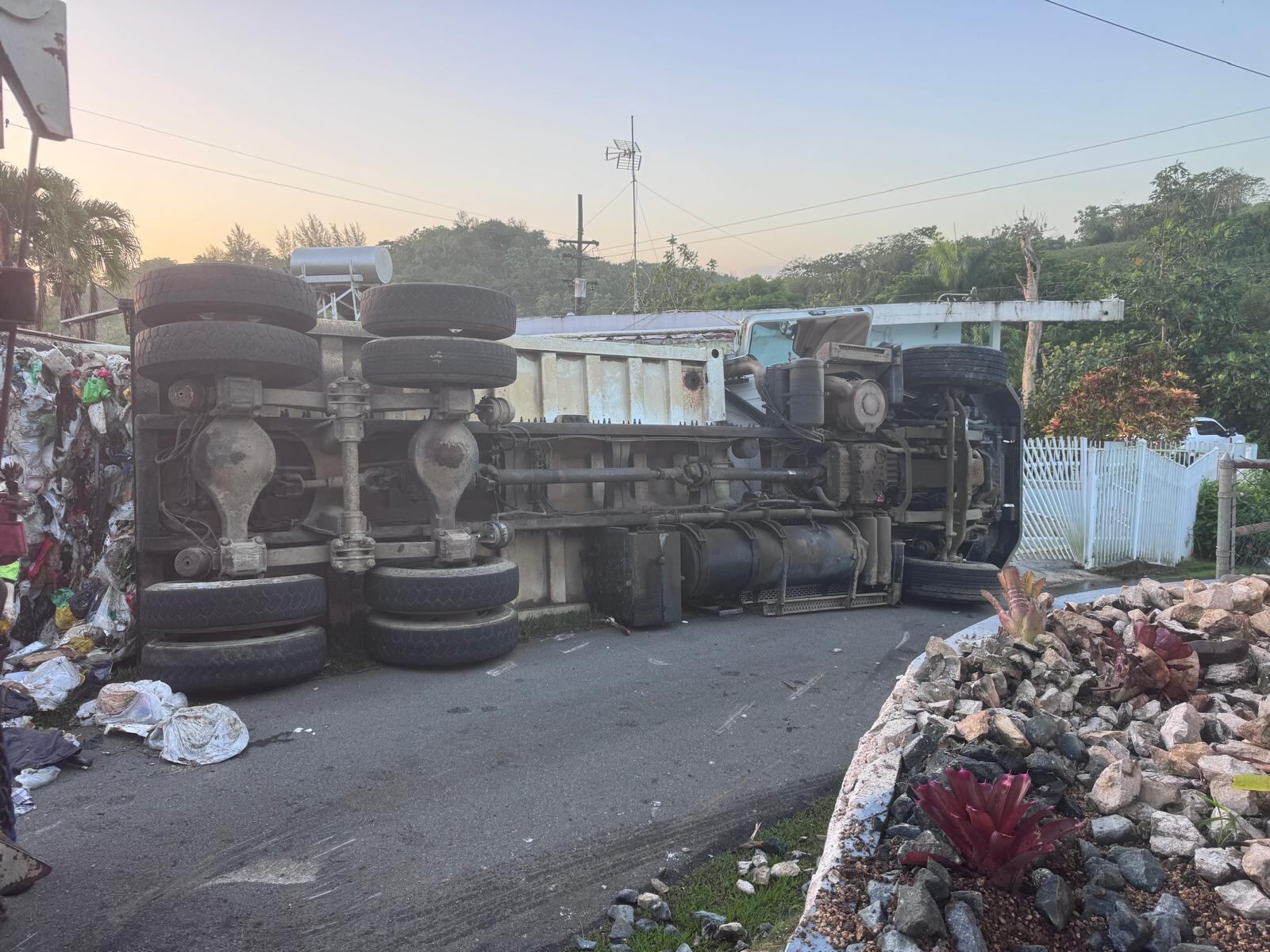 Agentes del Negociado de la Policía de Puerto Rico (NPPR) investigan un accidente con un camión ocurrido en la madrugada de hoy, miércoles, en el barrio Quebrada Cruz, en Toa Alta.