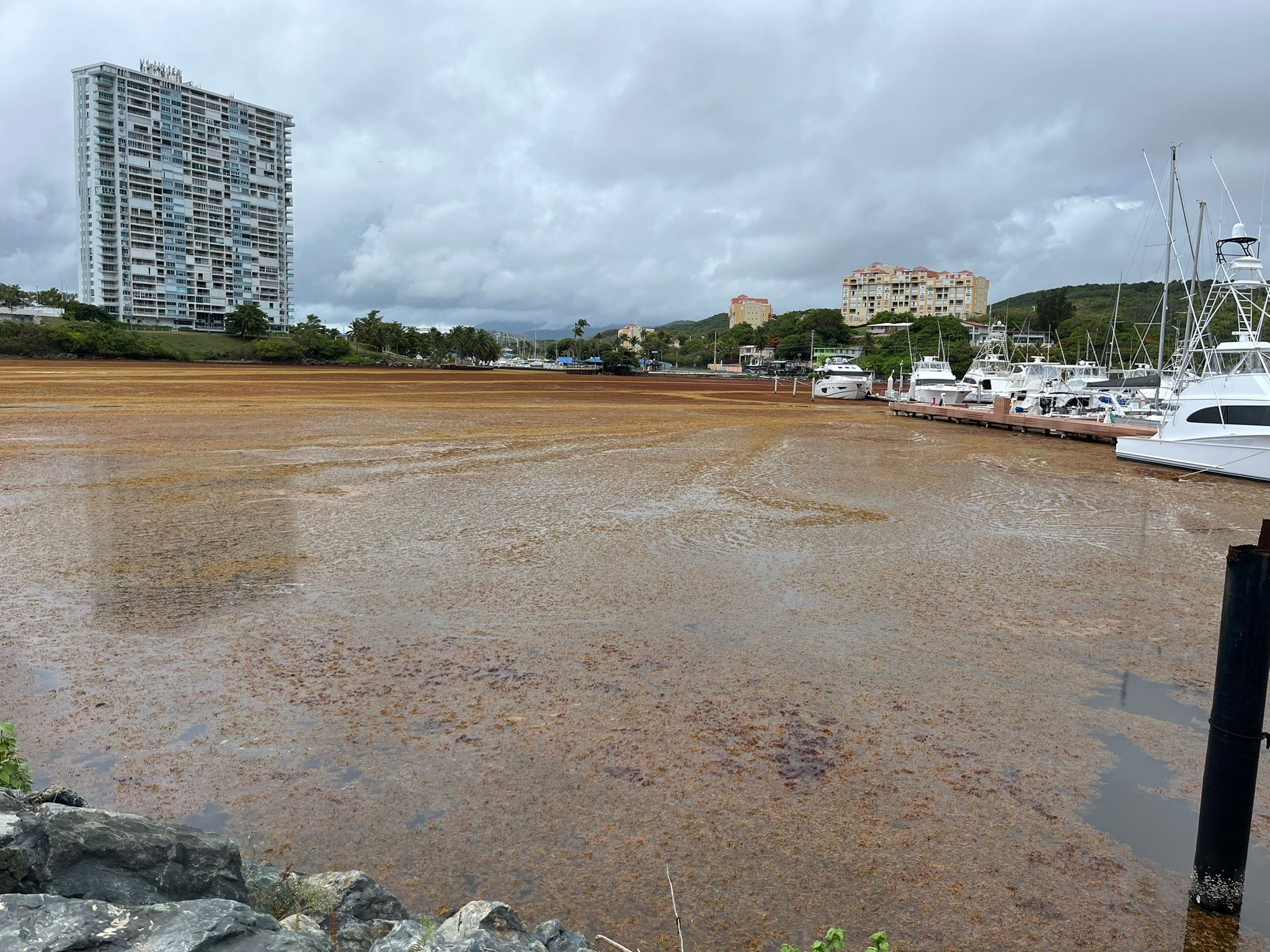 Imágenes compartidas a este medio muestran una gran acumulación de sargazo que llegó a la zona de Villa Marina, en Fajardo.