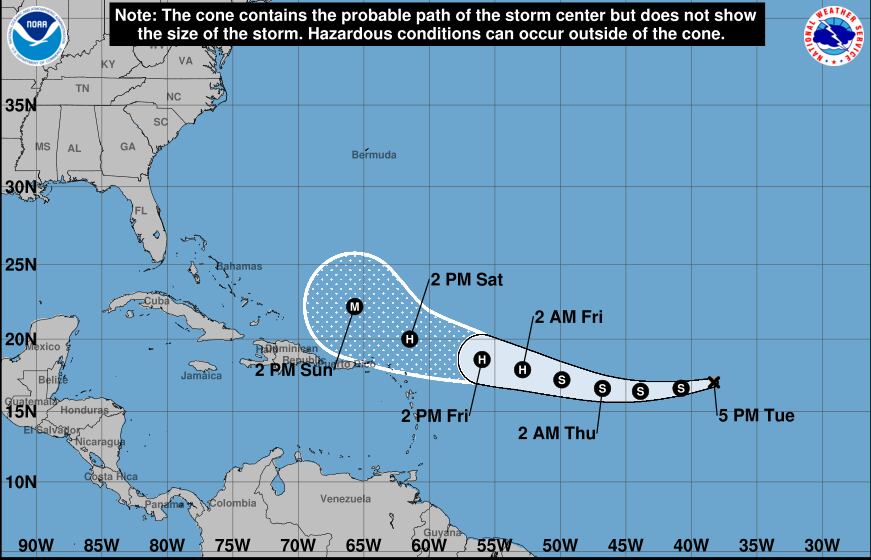 Actualmente, no hay avisos ni alertas de tormenta o huracán vigentes en zonas costeras, pero el NHC recomienda que las personas en las Islas de Sotavento del norte, las Islas Vírgenes y Puerto Rico continúen monitoreando de cerca la evolución de Erin.