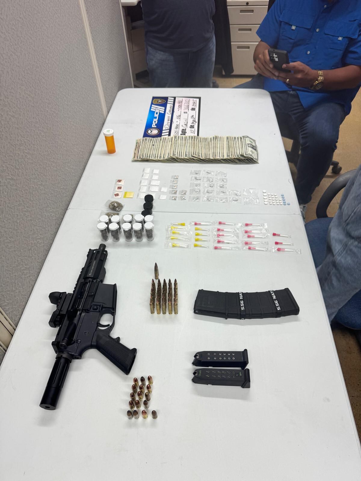 En esta segunda intervención se ocupó un rifle CBC calibre 5.56, tres cargadores, 41 municiones de rifle y pistola, además de sustancias controladas que incluían 23 cápsulas de crack, tres bolsas y 12 envases de marihuana, 16 bolsas de cocaína, siete bolsas adicionales de crack, 17 decks de heroína, 31 pastillas y $77 en efectivo.