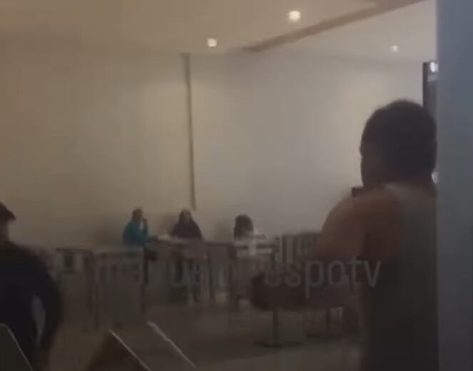 En el video publicado en las redes sociales se puede ver cómo los hombres lanzaron sillas y golpearon al hombre para detenerlo.