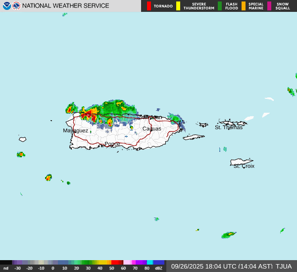 El Servicio Nacional de Meteorología (SNM) en San Juan informó el viernes sobre la presencia de tronadas fuertes con ráfagas de viento y posible formación de nubes tipo embudo que afectan los municipios del noroeste de Puerto Rico.