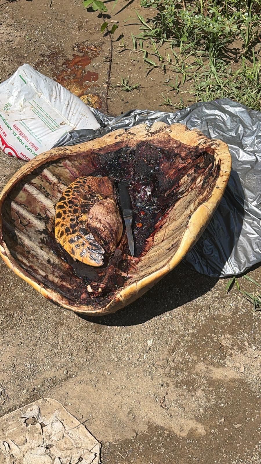 Una lamentable escena fue descubierta por vigilantes del Departamento de Recursos Naturales y Ambientales (DRNA) en un vertedero clandestino ubicado en el barrio Las Ochenta, en Salinas. Allí, personal de la Unidad Marítima del Cuerpo de Vigilantes halló el caparazón de una tortuga carey junto a sus vísceras y un cuchillo filoso, lo que apunta a un acto de caza ilegal.