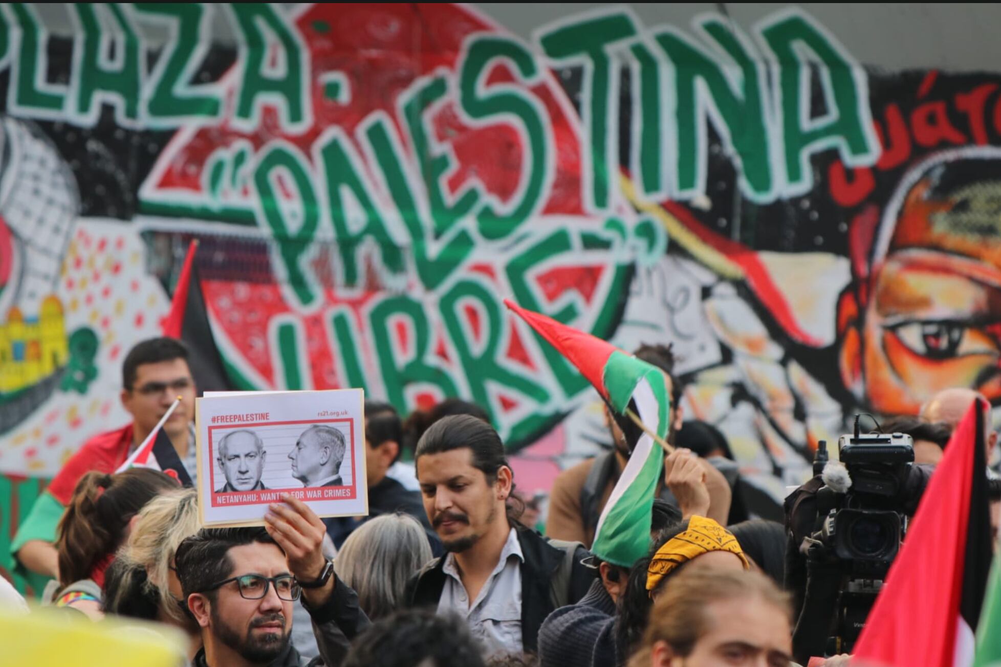 Un cartel sobre la guerra en Gaza fue llevado por los manifestantes en lo que parecía ser una marcha pacífica.