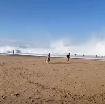 En el video, grabado por un ciudadano, se puede ver el fuerte oleaje en la costa; muchas personas se encontraban dentro del cuerpo de agua. Igualmente, el oleaje impulsó el agua hasta la zona de la arena donde se encontraban personas, muy retiradas de la orilla.