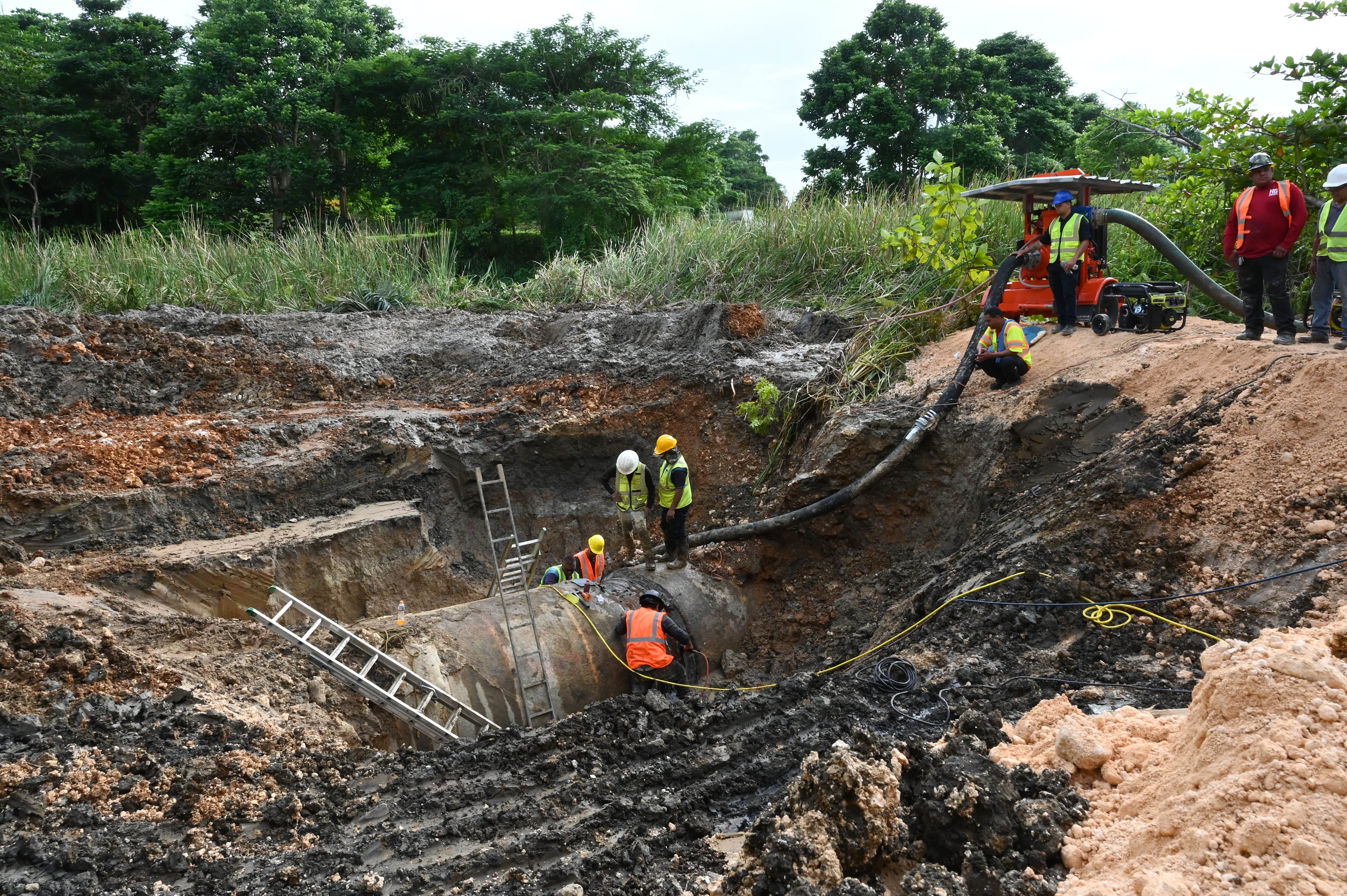 La interrupción del servicio comenzó el martes, 21 de octubre, tras la rotura de una anilla metálica en la tubería de 72 pulgadas ubicada en Manatí, lo que provocó la paralización del sistema principal que transporta agua desde Arecibo hacia el norte y el área metropolitana. Las reparaciones incluyeron trabajos de excavación profunda, demolición de hormigón, reemplazo de piezas metálicas y soldadura, en colaboración con contratistas privados y la Guardia Nacional.