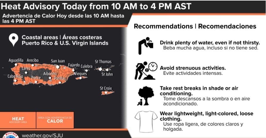 Emiten advertencia de calor para las zonas costeras y urbanas de Puerto Rico