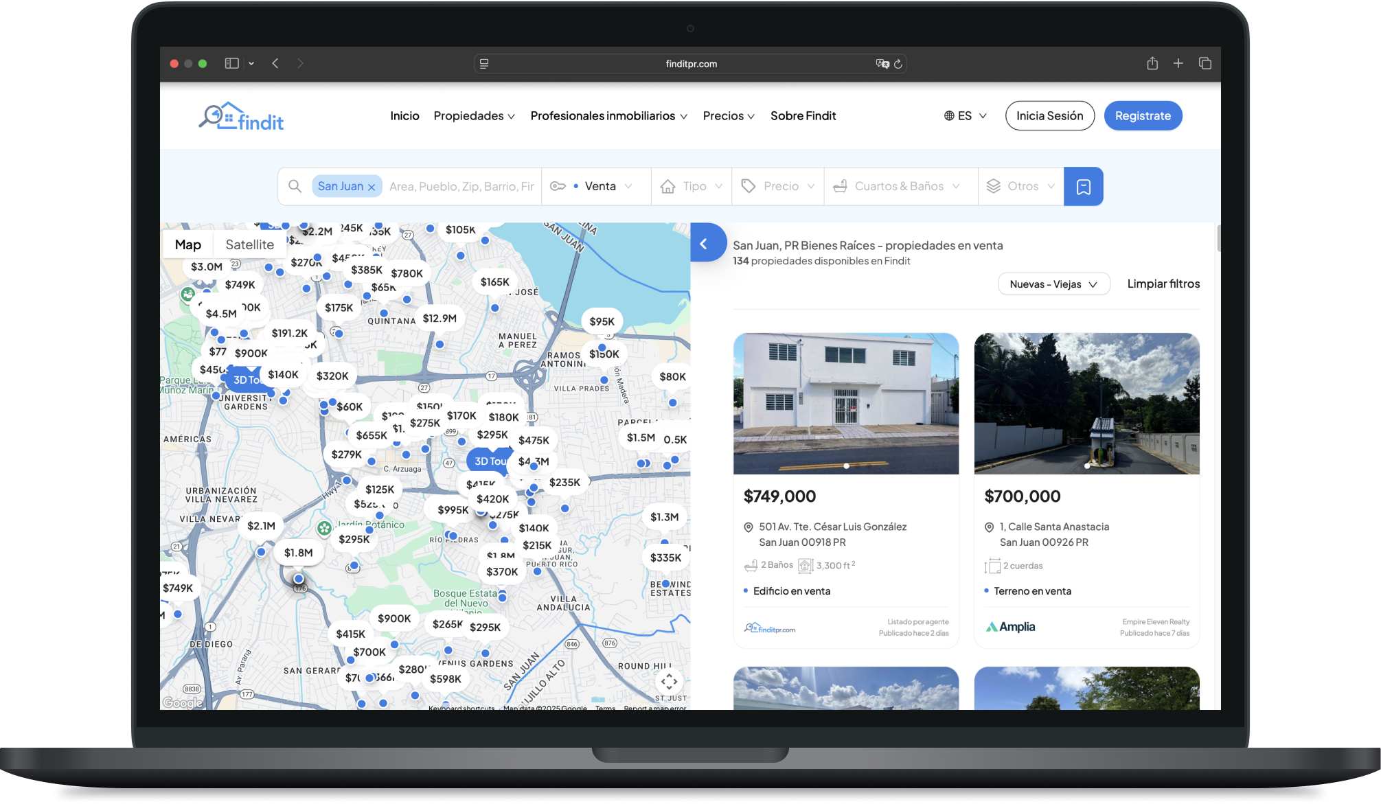 FinditPR simplifica todo el proceso, desde la búsqueda inicial hasta la decisión de compra o alquiler, apoyando al mercado inmobiliario de Puerto Rico mediante: