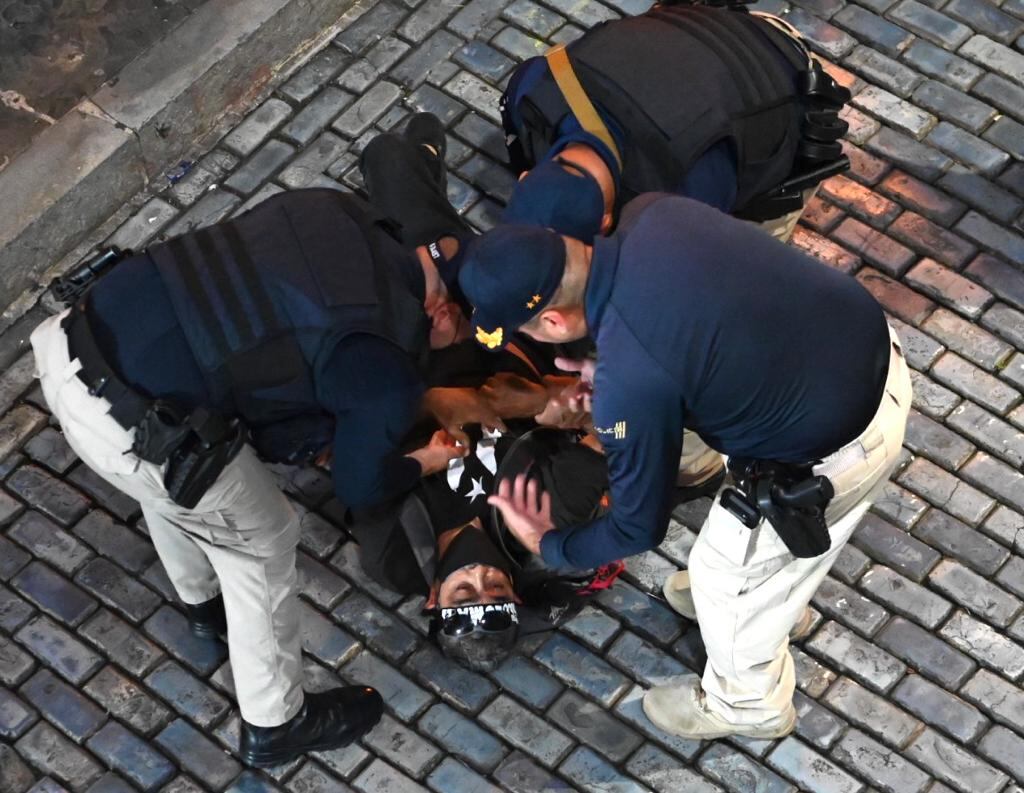 Según la investigación realizada por la Policía de Puerto Rico, De Jesús Mercado, de 67 años, fue arrestado durante una manifestación frente a La Fortaleza, en el Viejo San Juan, mientras instalaba una caseta de acampar. Agentes de la Unidad Motorizada de San Juan le notificaron que desistiera de dicha acción, al entender que violentaba la ley.