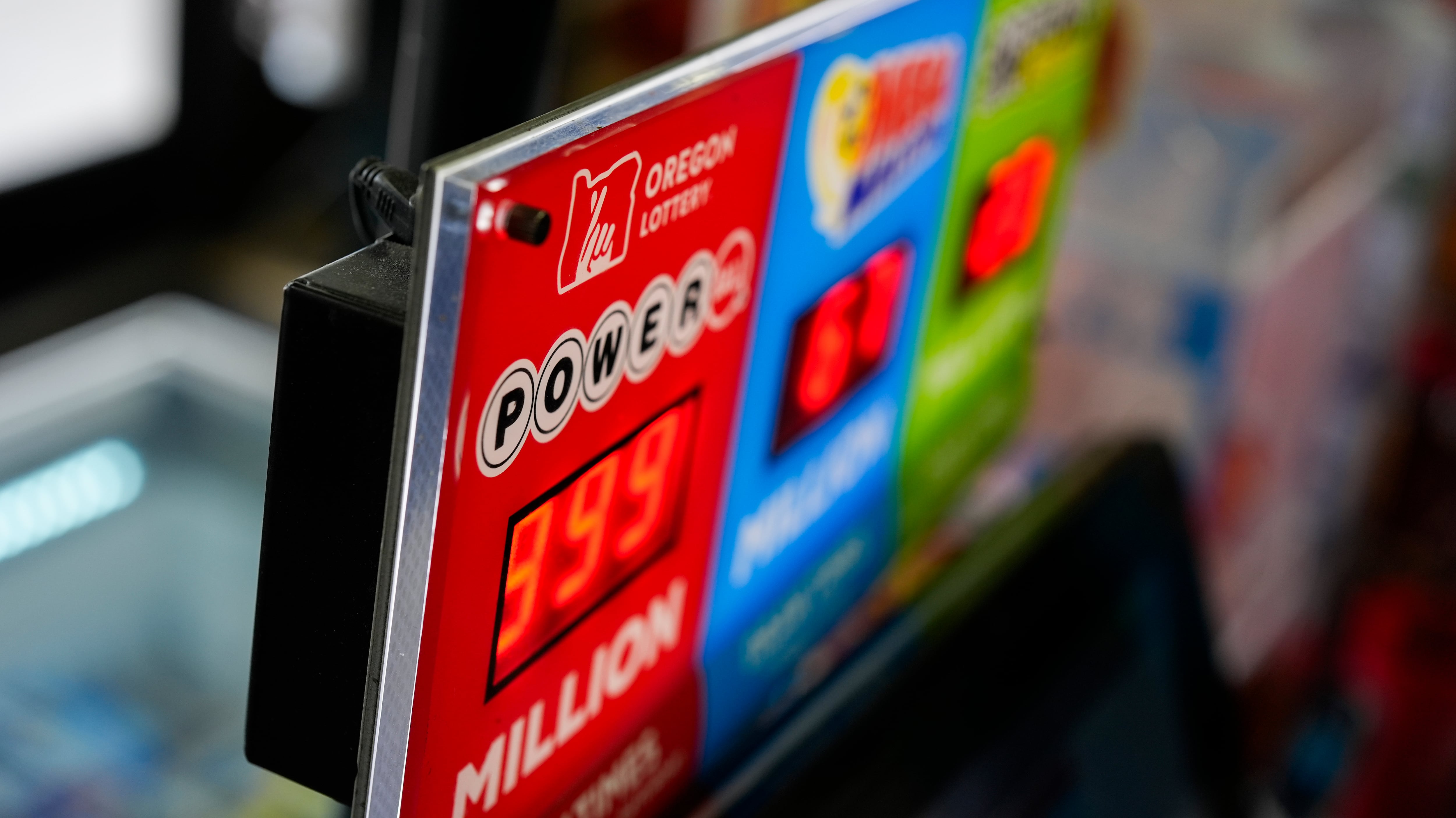 Un cartel del bote de la lotería Powerball se ve en un 7-Eleven, el viernes 5 de abril de 2024, en Portland, Oregon. (AP Foto/Jenny Kane) AP (Jenny Kane/AP)