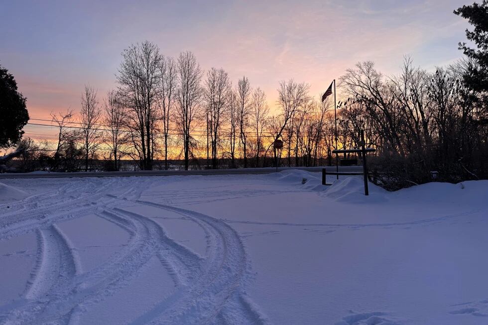 El sol sale sobre una escena invernal en Lowville, Nueva York, el 28 de diciembre de 2025. (Foto AP/Cara Anna)