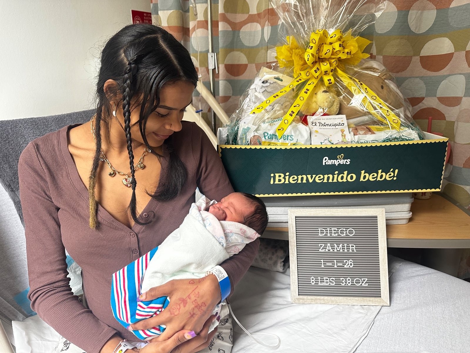 El bebé, identificado como Diego Zamir Almego Colón, nació a las 7:00 a.m. con un peso de 8 libras con 3.8 onzas y una estatura de 18 pulgadas. Su madre, Tanairy Colón Rodríguez, fue atendida durante el proceso de parto por el obstetra Dr. Javier R. Burgos Cotto, junto al equipo médico y de enfermería del hospital.