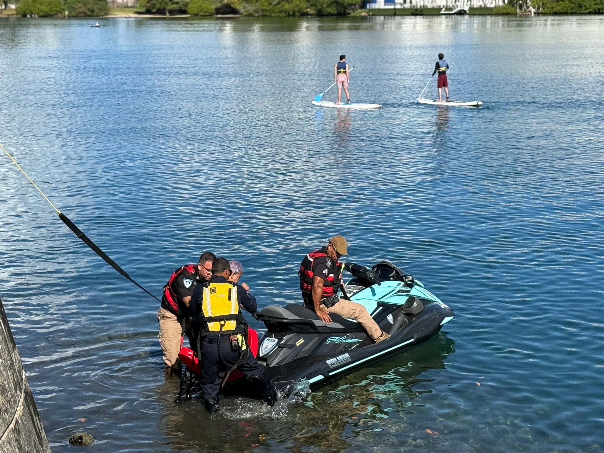 Al lugar también llegaron motoras acuáticas de la Policía Municipal de San Juan, en coordinación con personal marítimo de OMMEAD San Juan, quienes evaluaron la condición del ciudadano y realizaron la extracción segura desde el área rocosa.