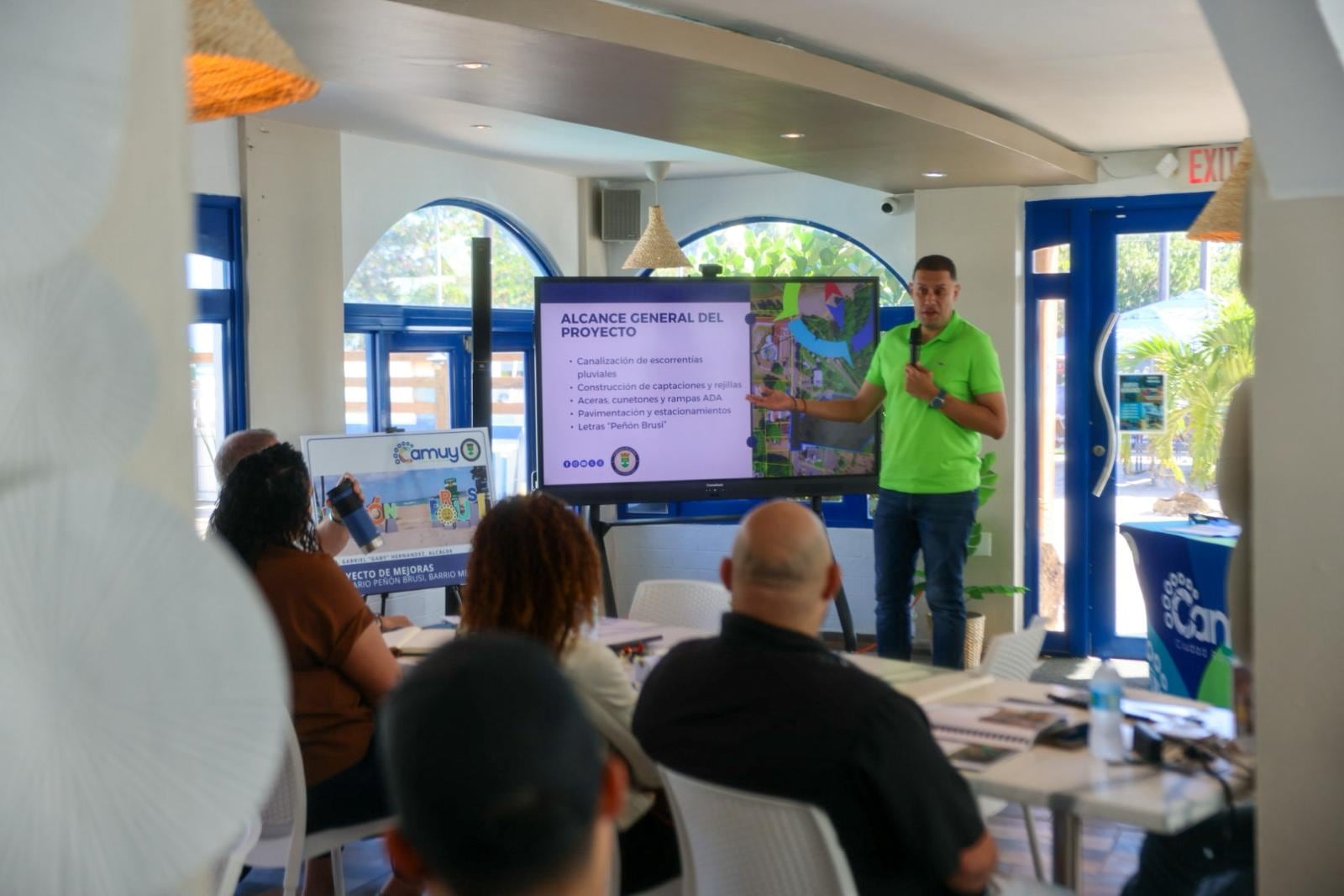 Hernández Rodríguez detalló que el alcance incluye la demolición de estructuras deterioradas, la construcción de muros de protección para tuberías, la instalación de nuevas tuberías de gran diámetro, mejoras al asfaltado, demarcación y organización del flujo vehicular, así como la construcción de letras con el nombre “Peñón Brusi” como elemento de identidad turística. También, se contempla la construcción de nuevos baños y duchas públicas en una segunda fase del proyecto.
