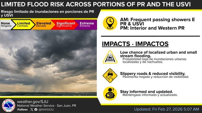 Tiempo. Riesgo limitado de inundaciones. (X @NWSSanJuan)